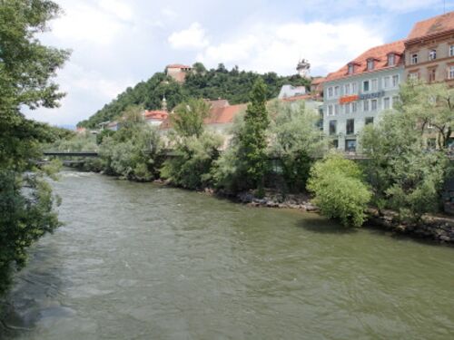 さて、旅行の最終日。 ウィーンから700km離れたイタリアの我が家に車で戻ります。 でも、ちょっと寄り道。 まずは、ウィーンから200km離れた『オーストリアの古都グラーツ』へ。 町を見下ろす丘の上にお城が建っていて 涼し気な川が流れていて、 城下に…